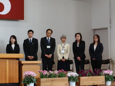 校歌披露 職員全員で歌いました。1年生もぜひ早く覚えてくださいね。