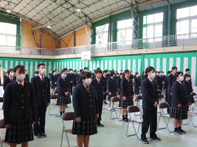 今日から教育活動再開です。午前中は新任式と2・3年生の始業式を行いました。 <新任式> 今年度、新しく14名の先生をお迎えしました。(都合で、お一人欠席です) 代表して、教頭先生からご挨拶をいただきました。 「みなさんと会えて、とても嬉しいです!」 生徒代表歓迎の言葉 生徒会長 「先生方と力を合わせて、鹿本農高での生活をより充実させていきたいと思います。よろしくお願いします!」 <始業式> 開式 校長講話 「今年の教育スローガンは、 です。目標を持って、その実現に向けて一日一日取り組んでください」 「季節の変わり目は体調が崩れがちです。何かあれば、遠慮なく信頼できる人に相談してください」 校歌斉唱 各部長・生徒支援教員紹介 各部署の主任となる先生方を紹介しました。 担任・副担任紹介 生徒にとっての一番の関心事です。 (農場管理などで参加できていない先生も数名います) 3年部の先生方 2年部の先生方 1年部の先生方 例年歓声や悲鳴が上がるのですが、今年はおとなしめでした。ちょっと残念(笑)。 各部からの連絡 教務部 「明日からコロナウイルス感染拡大防止のための特別日課となります」→トップページ参照 進路指導部 「コロナウイルスの影響で、求人が減ったり大学や専門学校の倍率が上がることが予想されます。そんなときに大切なのは、基礎学力と人間力です」 環境保健部 「まだまだ注意が必要です。一人一人ができる対策を行っていきましょう」 専門部 「イベントの中止などが続きふさぎがちな毎日ですが、作物は順調に育っています。みんなの手入れを待っています」 生徒指導部 「当たり前のことを当たり前に行ってください」 「明日から1年始がやってきます。良い手本となるような生活を送ってください」 生徒支援部 「不安な日々を送っていると思います。そんな中で、自分はどんな人でありたいかを考えてください」 「何かあれば、愚痴をこぼしに来てください」 人権教育担当 「言葉=言霊と言われます。悪い言葉を使っていると、そういう人になっていきます。良い言葉を使いましょう。人を攻撃するような言葉を使うのはやめましょう」 これで始業式は終了。このあと大掃除&入学式の式場設営を行い 各クラスでLHRを行って放課となりました。 |
