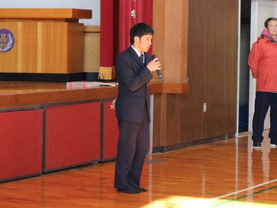 とても寒い体育館でしたが、みんな集中して話を聴いてくれました。