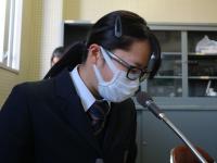 三部会(生徒会・農業クラブ・家庭クラブ)の旧会長が1年間の活動を振り返り、感謝の言葉を述べました。