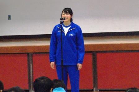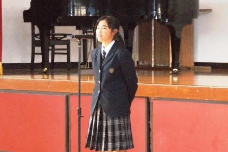 | 進路報告会の後、2年生による意見発表を行いました。 施設園芸科代表 食品工業科代表 バイオ工学科代表 生活科学科代表 各科の代表が、ここまでの生活の振り返り、将来の夢や目標、進路実現に向けた意気込み、鹿本農高のリーダーとしての自覚など、それぞれの思いを語ってくれました。 |