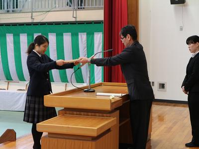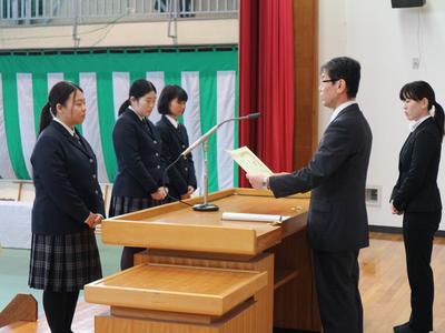 校内表彰 3年間皆勤賞(10人受賞しました) |
