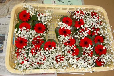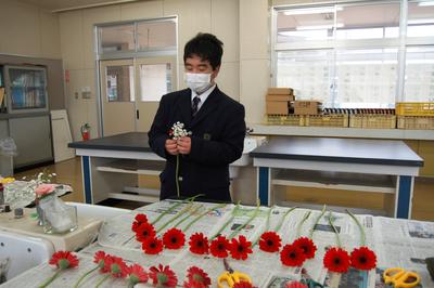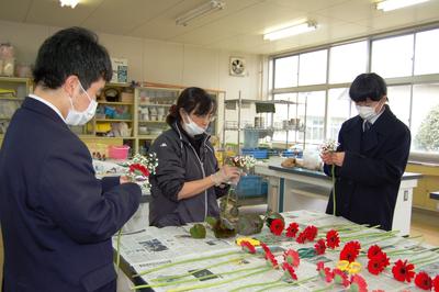 明日卒業する3年生のためにフラワーデザイン部と協力者でコサージュを作りました。