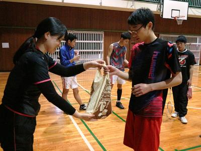 卒業を1週間後に控えた3年生を招いて、送別試合を行いました。 数ヶ月ぶりにラケットを握る3年生もいます。けがをしては大変なので、1時間ほどかけて入念にウォーミングアップを行いました。 試合は学年対抗のシングルスで行いました。 3年生の最後の雄姿をご覧ください。 勝率や総得点数・総失点数などで順位を付け、上位者には商品が贈られました。 優勝 2年生 第2位 3年生 第3位 3年生 第4位 3年生 第5位 2年生 この後も、時間いっぱいまでダブルスの試合で盛り上がりました。 3年生の皆さん、お疲れさまでした。卒業しても、たまには体育館に顔を見せてくださいね。 |