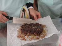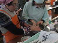ミキサーにかけたタイズと水を鍋で温め、袋に移します。みんな真剣です。