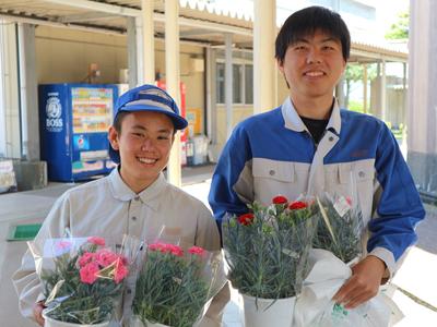 5月12日(日)は母の日です。今年もバイオ工学科3年生温室専攻の生徒が、カーネーションの販売に来てくれました。 ワゴンにはきれいなカーネーションがいっぱいです。 今年は温室専攻生が2人だけということもあり、とても忙しそうに校内を飛び回っていました。 |