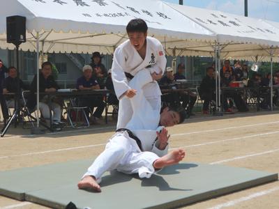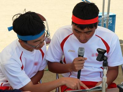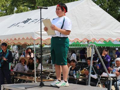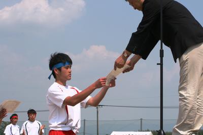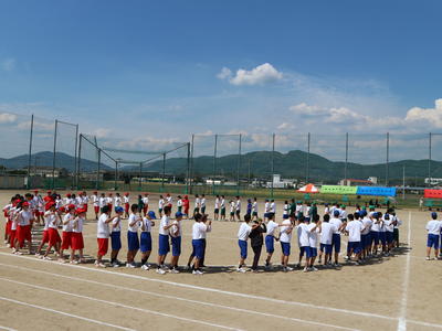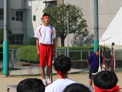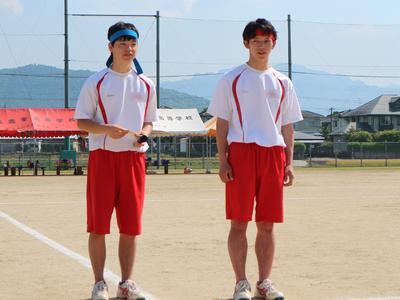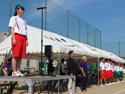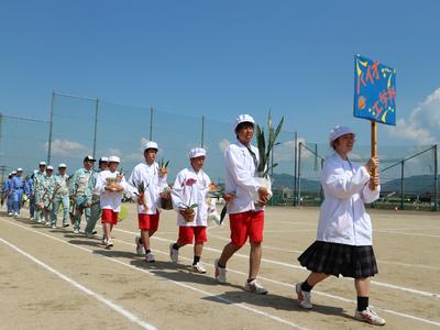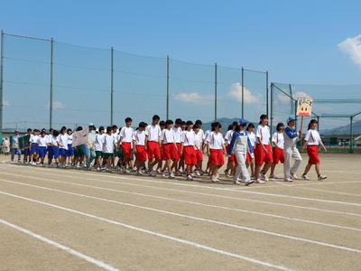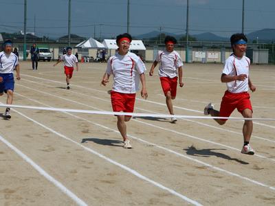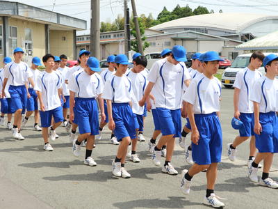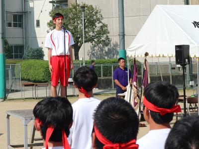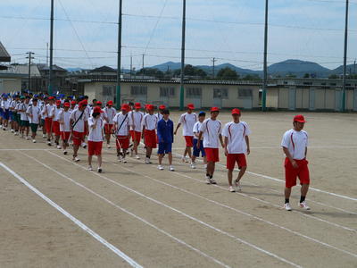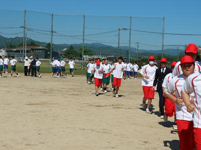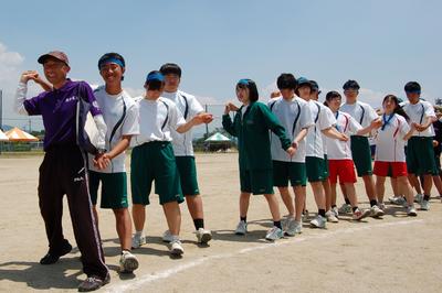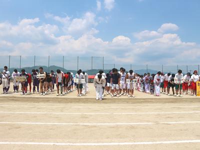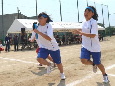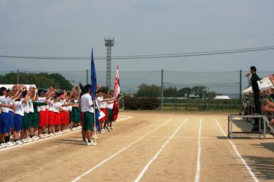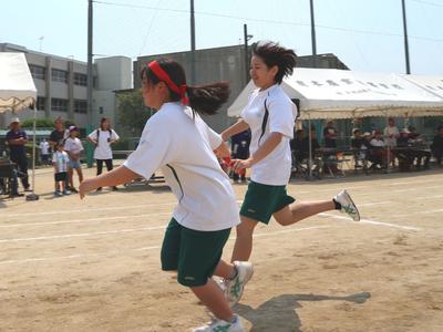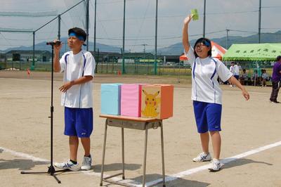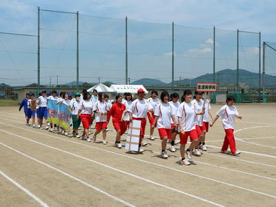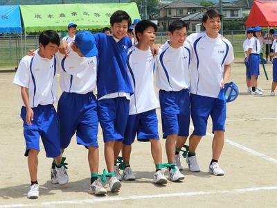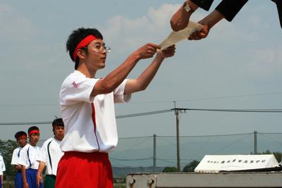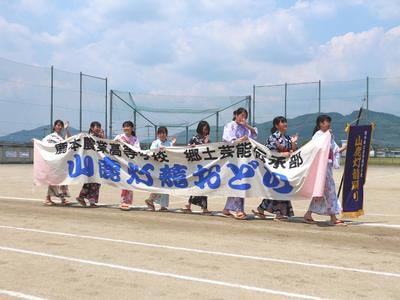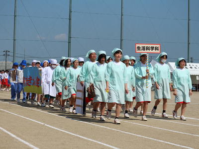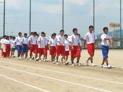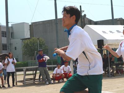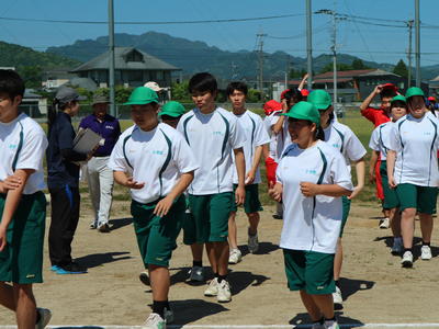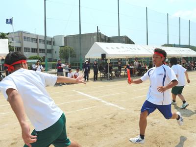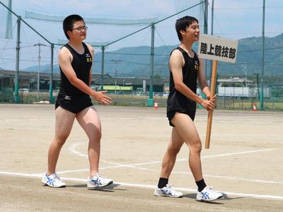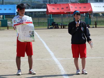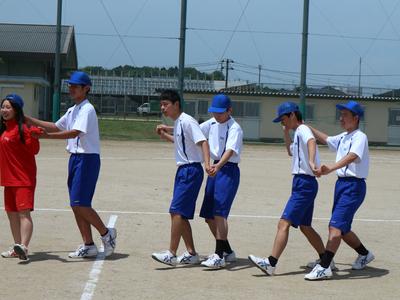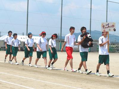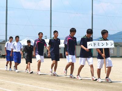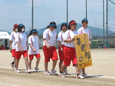 午後のプログラムのスタートです。 プログラムNo.13 部紹介行進・部対抗リレー <部紹介行進> 野球部 サッカー部 陸上競技部 ソフトテニス部 パフォーマンス付きでした。 柔道部 卓球部 バドミントン部 バスケットボール部 パフォーマンス付きです。 郷土芸能伝承部 食品加工部 茶道部 調理部 百人一首部 フラワーアレンジ同好会 イラスト同好会 <部対抗リレー> パフォーマンスの部 優勝は野球部でした。
