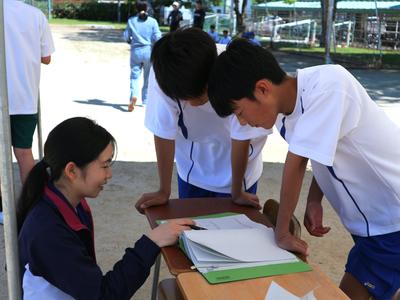 長い長いGWが終わり、気がつくと体育大会まであと4日しかありません。今日から体育大会に向けての練習が始まりました。 4限目に全体連絡と 各係の集合・打合せを行いました。 係がない生徒は、グラウンド整備や準備をお願いしました。 午後はグラウンドに出て、各生徒の出場種目や係の動きの確認を行いました。 招集 誘導・入場 競技説明 放送係 集計係 明日から本番までは1日ずっと練習です。体調管理には十分気をつけてください。 保護者のみな様、体育服の洗濯、よろしくお願いします! |