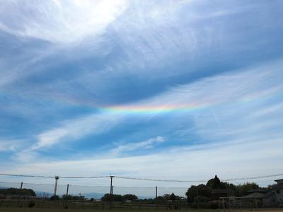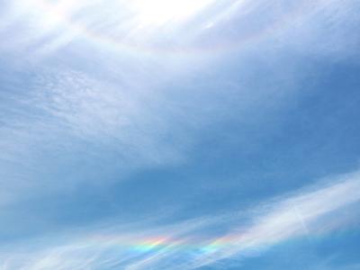 体育大会の練習をしていると、空に虹が架かっていました。 分かりますか? 「きれいだなぁ」「でもちょっと変わった感じだなぁ」と思いつつ見ていると、なんと虹は二重に架かっていました。 写真にはなかなかうまく写りませんが... しかも、小さい方の虹は太陽のまわりをぐるりと囲んでいました。 これは珍しい!ということで、調べてみました。 下の方の水平に出ている虹は「環水平アーク」、太陽まわりの円形の虹は「日暈(ひがさ・にちうん)」と呼ばれ、どちらも珍しい現象だそうです。 二重虹(ダブルレインボー)は幸運の印だそうです。こんなレアな二重虹が架かったのですから、体育大会はきっと大成功でしょう! |