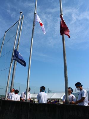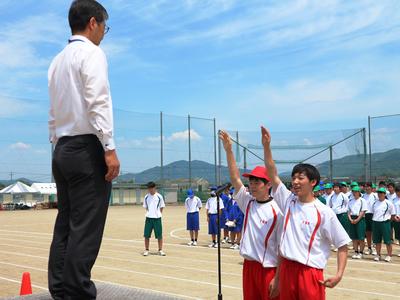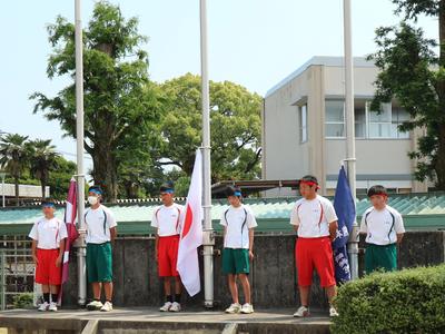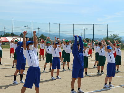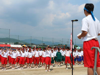 晴天すぎるほどの青空の下、令和元年度の体育大会が行われました。その様子を数回に分けて紹介します。 プログラムNo.1 開会式 開会宣言 生徒会副会長 国歌斉唱ならびに国旗・県旗・校旗掲揚 校長あいさつ 生徒会長あいさつ 競技上の注意 体育副委員長 代表選手宣誓 各団団長 ラジオ体操 ここから採点競技となります。 (つづく) |