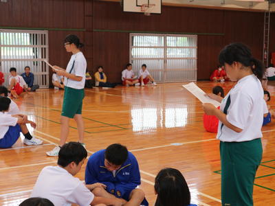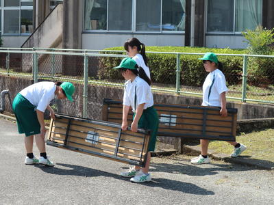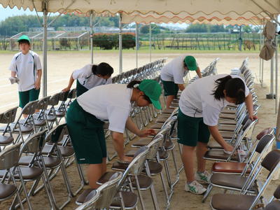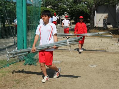 いよいよ明日が体育大会です! 今日はまず、会場作りを行いました。 日頃から実習で鍛えられているためか、てきぱきと働いてくれました。みんなの頑張りで、予定より早く会場作りが終わりました。ありがとう。 このあと、昨日雨で十分に出来なかった予行を、ショートバージョンで行いました。