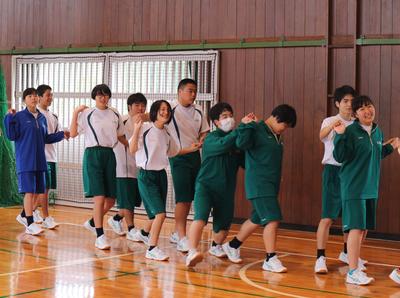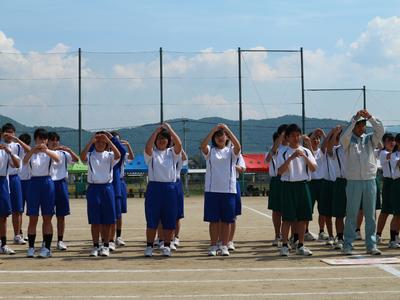 二重虹の下、今日も体育大会の練習に取り組みました。 午前は開閉開式の流れを確認し、団体競技の練習を行いました。 開会式 選手宣誓 ラジオ体操 閉会式 万歳三唱 各団の団長・副団長と打合せの後、 団体種目の練習を行いました。 背渡り 団結競技 6人7脚リレーです。 フォークダンス 今年から全校生徒参加の得点競技になりました。 先生によるお手本のあと みんなで踊ってみました。 男女比の関係で、男子同士のペアもちらほらと見られます。 これで午前中の練習は終了。 ちょっと長めの昼休みをとり、午後は学科練習です。 |