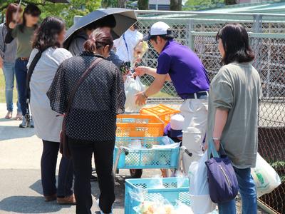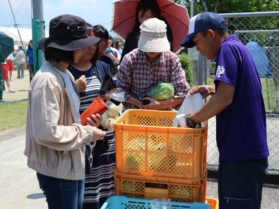 <臨時販売会> 昼休みには、カーネーションと野菜の臨時販売会を行いました。翌日が母の日ということもあり、大盛況でした。 (つづく。長くなっていますが、もうしばらくお付き合いください。) |