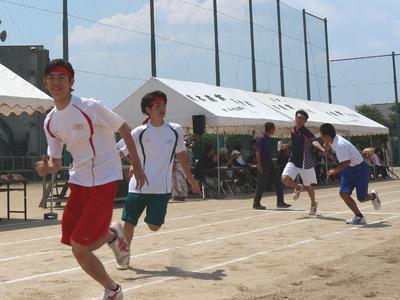 <ガチンコの部> 先生たちの力走も見られました。 優勝は男子バスケットボール部でした。