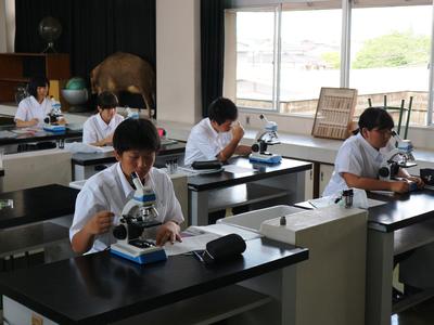 1年生のバイオ工学科と生活科学科が、顕微鏡操作の練習を行いました。 見ていたのは、オオカナダモという植物の細胞です。葉緑体と、葉緑体が細胞内を移動する現象(原形質流動)を観察しました。 顕微鏡操作は中学校で習ってきていますが、多くの中学校が2人に1台、場合によっては4人に1台しか顕微鏡がなく、あまり扱った事がない生徒も多くいるため、今回復習を行いました。 顕微鏡は今後も使用する機会がありますので、しっかりと操作方法を身につけてください。 |