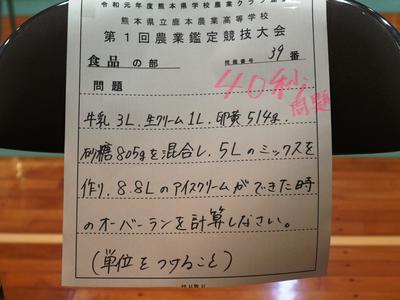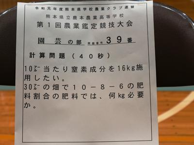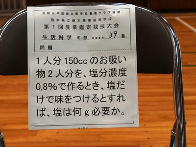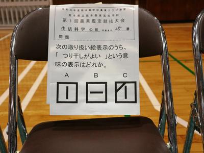 本日3限目、校内農業鑑定競技会が行われました。 問題は40問。38問目までは1問20秒で解答。最後の2問は1問40秒の計算問題です。 施設園芸科とバイオ工学科は園芸の部にチャレンジ。 施設園芸科 バイオ工学科 数学の先生が飛び入り参加していました。 問題はこんな感じです。 食品工業科は食品の部にチャレンジ。 問題はこんな感じ。 生活科学科は生活科学の部にチャレンジ。 問題はこんな感じです。 解答が終わったら、各クラスの係がすぐに採点します。 今回の結果を参考に、県大会への出場者が選ばれます。県大会を勝ち抜けば、県代表として全国大会出場です。みんな、手応えはどうでしたか? 数日中に結果が発表されると思います。お楽しみに。 |