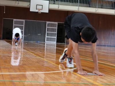 8月13日(火)~15日(木)まで、本校はお盆休み(学校閉庁日)をいただいていました。ありがとうございました。 お盆休み明けの16日(金)、練習再開のバスケットボール部とバドミントン部が合同で、日頃の感謝の気持ちを込めて体育館フロアの雑巾がけを行いました。 おかげで体育館のフロアはぴかぴか!シューズも滑りにくくなり、けがの防止にもなります。そして約30分間の雑巾がけは、とても良いトレーニングになりました。 「毎日やろうかな...」←ある先生のつぶやきより(笑) |
