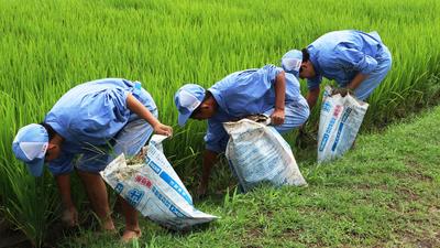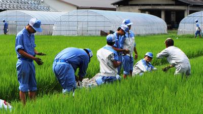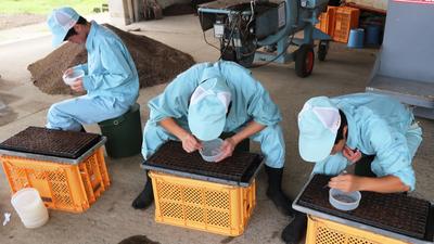 抜いた苗木を細かく切る作業をしています。細かく切った方がそ