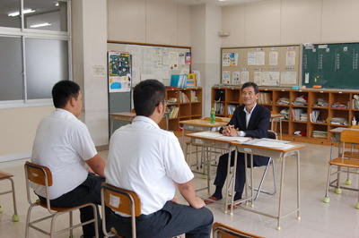 | 8月28日(夏休み最終日)、3年生の就職試験受験者は、さんぽう専任講師の方々による模擬面接を行いました。就職試験開始日まであと約2週間。今日の模擬面接では厳しいお叱りも受けましたが、あきらめることなく、面接練習に励み、内定を勝ち取ります! |