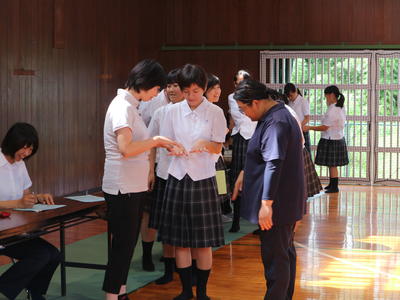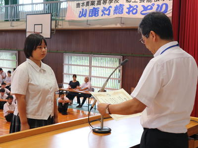 長かった夏休みが終わり、今日から2学期が始まりました! <新任式> 産前休暇に入った先生に代わり、今日から新しい先生が鹿本農業高校に来てくださいました。よろしくお願いします! <表彰式> 熊本県学校農業クラブ農業鑑定競技大会 生活の部 優秀賞 <始業式> 校長訓話 「みんなの元気な顔を見ることができて、嬉しく思います」 「今年の夏休みの自己採点は何点ですか?振り返ることが大事です。それが成長につながります」 「人の行動は意識していることは1割のみ、残りの9割は無意識なのだそうです。何事もまずは意識して行い、それを無意識でできるようになることが大切。挨拶・整容・時間などについて、最初は意識して良い行動をし、最終的には無意識でできるようになってほしい」 校歌斉唱 各部連絡 教務部 「長いと言われる2学期ですが、日数的には80日しかありません。1日1日、1時間1時間の授業・実習を大切にしてください」 進路指導部 「「学ぶ」ことは「真似る」こと。先輩や先生方の正しい行為をまねして自分のものにしてください」 環境保健部 「夏休み中に行った治療の報告は明日までにお願いします」 専門部 「みんなのお陰で夏休み中も農場管理ができました。ありがとう!」 生徒指導部 「君たちの安全を守るため、立場を守るため、するべきことをきちんとしてください」 生徒支援部 「今日学校にきてくれてありがとう。明日もきてね」 「自分の命はもちろん他人の命も大切に。2学期も差別やいじめのない学校をつくっていきましょう」 <整容指導> 各学期の始業式と定期考査の最終日に行います。自分の整容を見直すきっかけにしてほしいと思います。 終了後は教室にもどってLHR。4限~6限は課題考査です。 |