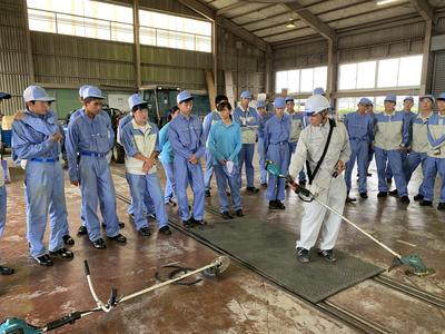 刈払機の点検および整備について、振動障害の予防や関係法令を学習しました。