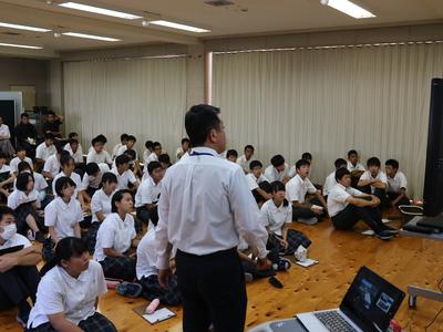 1限目の「総合的探求の時間」に、農場長から講話をしていただきました。 お話は本校の歴史から始まり、先日発表された学科改編についても説明がありました。 みんな真剣に聞いています。 講話の中で、バイオ工学科のこれまでを振り返る場面もありました。バイオ工学科を卒業し、現在本校に勤めているの先生の卒業アルバムの写真も公開され、大きく盛り上がりました。 「鹿本農業高校生の全員に夢を叶えるチャンスがあります。そのチャンスをつかみ取るために、積極的な行動をとってください」という励ましと期待の言葉で講話は締めくくられました。 |