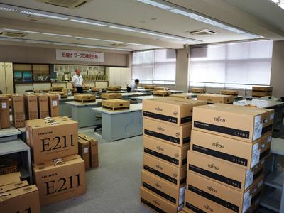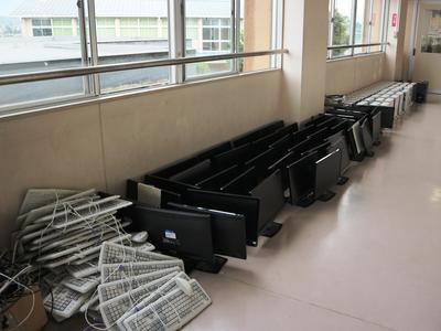 第1パソコン室のパソコンが新しくなりました。 搬出の様子 搬入の様子 一台一台セットしてくださってます。 完成! 今回のパソコンは、清潔感あふれる白です。モニターの画面は横長になった気がします。性能も上がってきっと使いやすいことでしょう。みんな、大切にしてくださいね。 |
