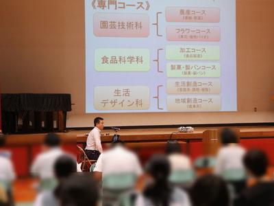 来年度新設される、新しい3学科の説明会を行いました。 校長あいさつ 農場長より、新学科の特色や本校での学びについて説明 教務主任より、来年度入試について説明 説明会には中学生や保護者様、中学校の先生方がたくさん参加してくださいました。 どうもありがとうございました。 なお今回の学科改編に関してご質問等がある場合は、遠慮なくお問い合わせください。 電話番号 0968-46-3101 |