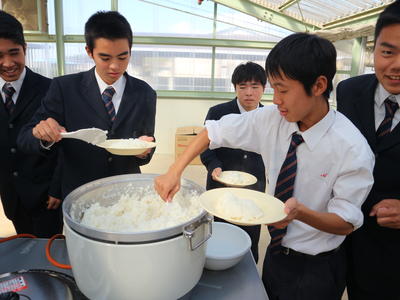 収穫感謝祭のお楽しみ。各科に分かれてのカレーの会食です。 カレーは各クラスの代表が、朝早く登校して作ってくれました。 お米は先日収穫したばかりの新米です。 <施設園芸科> <食品工業科> <バイオ工学科> <生活科学科> 食べるものに感謝し、食べられる幸せに感謝し、お腹いっっっぱいいただきました。 午後は、明日の一般公開に向けての準備です。 |