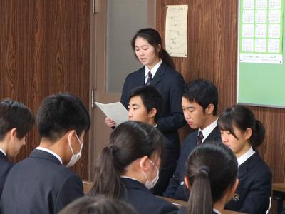 3学期の始業式を行いました。 開会 校長講話 「生徒・職員とも大きなけがや事故なく3学期を迎えられたことを、大変嬉しく思います」 「3学期は仕上げの学期であり、目標設定の学期です。このあとのLHRで今年の目標を設定し、それを達成するための方法を考えて提出してください」 「未来を変えるには今を大切にすること、今を一所懸命に生きることが大切です」 校歌斉唱 閉式のあと、各部連絡 教務部「今年はネズミ年。授業に集チュウして、先生お願いしマウスという気持ちを大切にしてください」 進路指導部「(女性が勉強することが難しかった時代に育った98歳の祖母が、自力で文字を学び、晩年も1日中新聞を読んでいたことを紹介し)何かを得るということは、やろうと思えばいつでもできる」 環境保健部「ペットボトルキャップ回収に協力してくれてありがとう。インフルエンザ予防のために手洗い・うがいを心がけ、基本的生活習慣を整えてください」 専門部「冬休みの当番実習、ありがとう。お陰で気持ちよく正月を迎えることができました」 生徒指導部「「自分ぐらいはよかろう」はもうやめよう。みんなで学校を良くしていこう」 生徒支援部「人を見下すような心のままでは、幸せになれない。自分の心の中にある差別の心をなくしていこう」 終了後、整容指導があり その後、3学期最初のLHRが行われました。 |