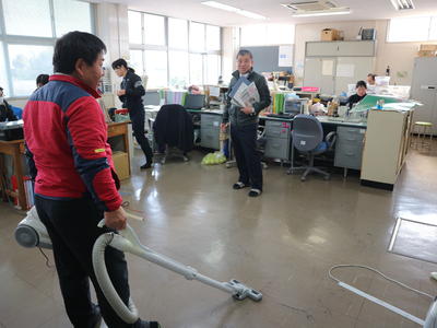 これで始業式は終了。このあと大掃除&入学式の式場設営を行い