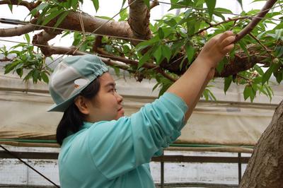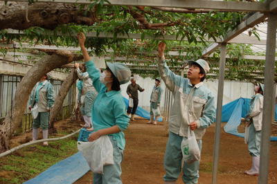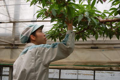大きな実になるように枯れた花や、未受精果を摘みます。