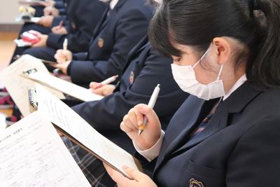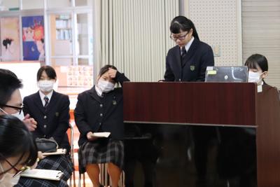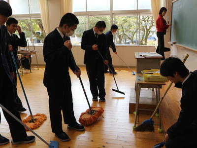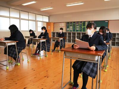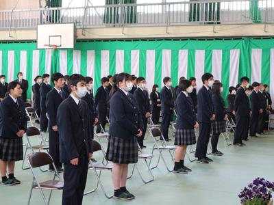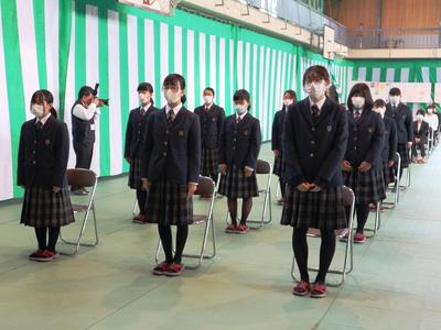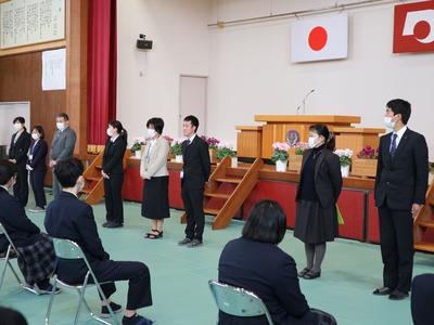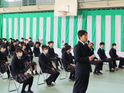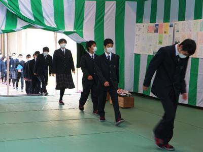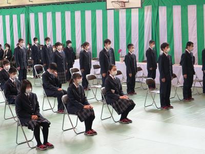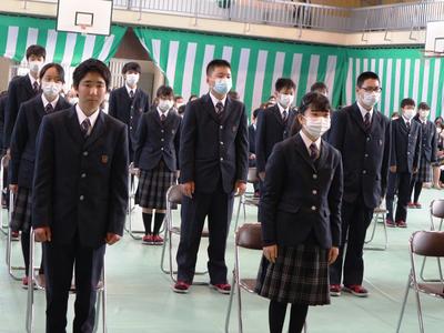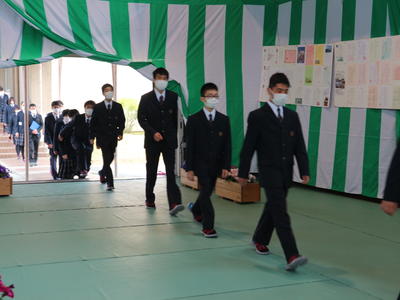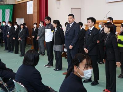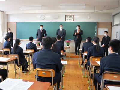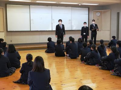 今日は午前中の4限授業とし、5限目に全校集会を開いて休校中の生活についての連絡と注意を行いました。寒い中でしたが扉は開け放ち、生徒間の距離も広めに取りました。