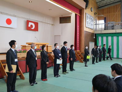 校歌披露 職員全員で歌いました。1年生もぜひ早く覚えてくださいね。