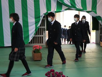 ※明日は2・3年生は通常通りの登校、新入生は12:15受け付け開始、13:00点呼、13:30入学式開会です。遅れることのないよう注意してください。