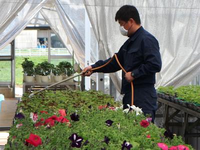 今日から再度休校となり、とても静かで寂しい校内です。 圃場を覗きに行くと、生徒の力が借りられない分、先生方が大忙しの様子です。 畝立て。早くてきれいです。さすが! ナシ園の草刈り。以外と広いので大変です。 ハウス周辺の草取り。一輪車の中の草の量に注目です。 電気柵の設置。アナグマ対策です。 花苗への灌水。一鉢一鉢、丁寧に水をやります。 休校中の圃場管理は、先生方がばっちりとやってくださいます。生徒のみんなは、健康管理をしっかりとやってくださいね。 |