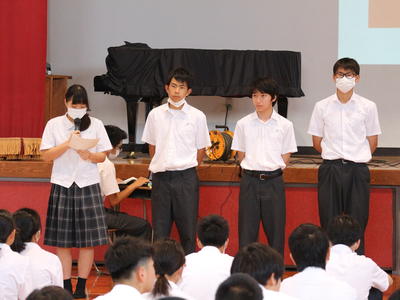 「シャツ出しやスマートホンの校内使用など、ルールを破ることが当たり前になっていませんか?」「当たり前のことを当たり前に行いましょう!」という呼びかけが行われました。