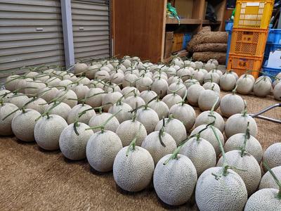 7月はメロンの季節。ハウスの中で大きく育ったメロンが