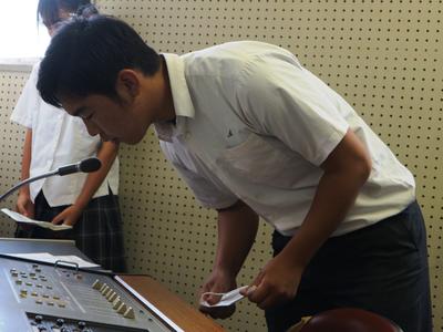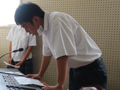 慣れない放送での集会に、生徒たちはみんな妙な緊張に包まれていました。そのせいでしょうか、全員椅子に座らず、立ったまま話していました(笑)。