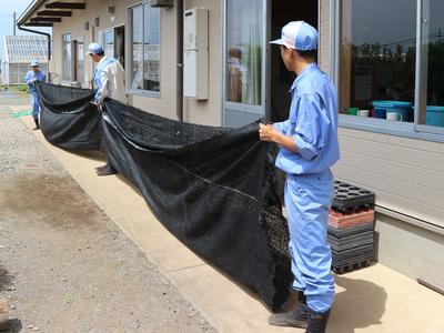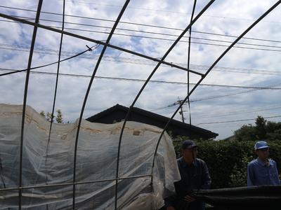 大型のハウスは先生が上って紐をかけ、補強しています。