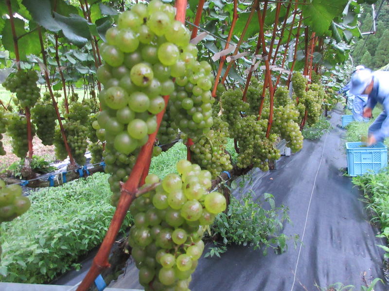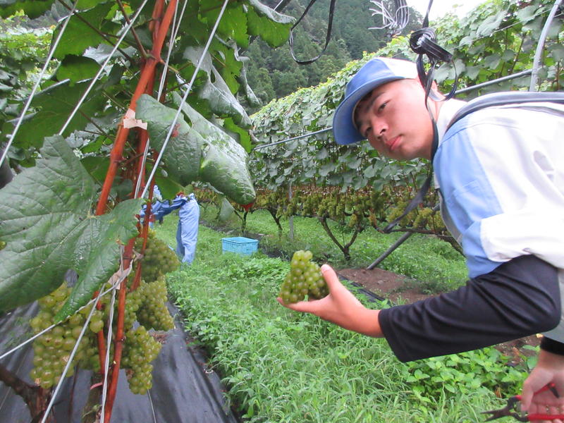 糖度が高く、実が詰まっているブドウだけを厳選して収穫します。