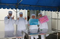 初めての販売実習、完売して笑顔の園芸技術科・一年生です。
