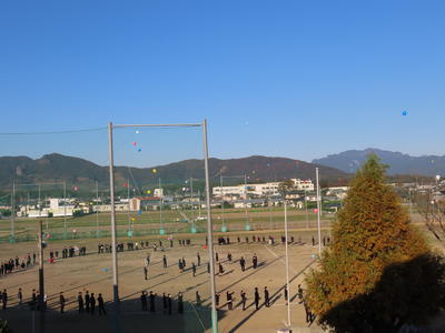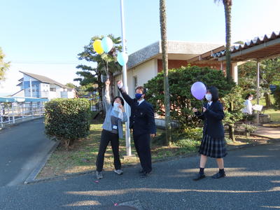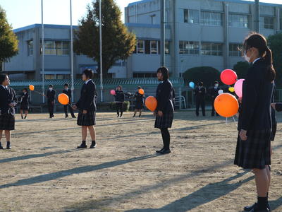 生徒会長の合図で・・・バルーンを一斉にリリース!