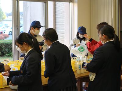 本日(13日)の放課後、生徒・職員向けの農産物販売会が行われました。先日の鹿農祭のとき、係の関係で購入できなかった人のための特別販売会です。