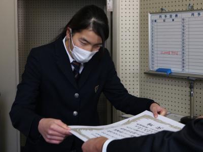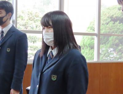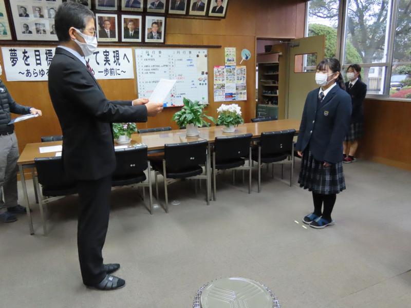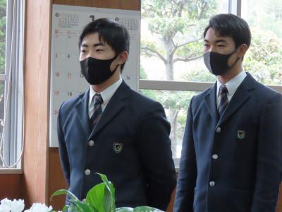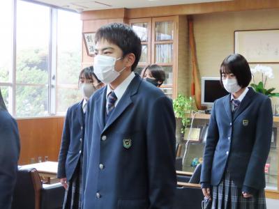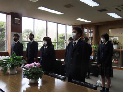 新三部会(生徒会・農業クラブ・家庭クラブ)役員が決まり、旧役員の退任式が校長室で行われました。