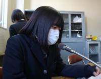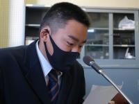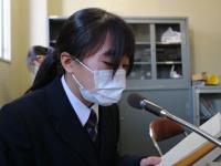 三部会(生徒会・農業クラブ・家庭クラブ)の旧会長が1年間の活動を振り返り、感謝の言葉を述べました。