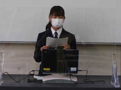 意見発表大会は県大会から九州大会・全国大会へとつながる大会で、今日の大会が学校代表の選考会を兼ねています。例年は体育館に全校生徒が集まって行うのですが、新型コロナウイルス感染拡大防止の観点から、今回はリモート開催となりました。