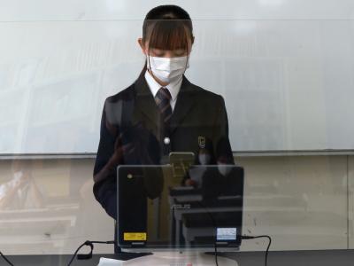 意見発表大会は県大会から九州大会・全国大会へとつながる大会で、今日の大会が学校代表の選考会を兼ねています。例年は体育館に全校生徒が集まって行うのですが、新型コロナウイルス感染拡大防止の観点から、今回はリモート開催となりました。