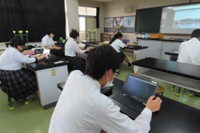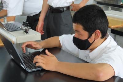 生徒たちは端末の画面を見ながら実験をして、実験レポートも電子データとして提出してもらいました。