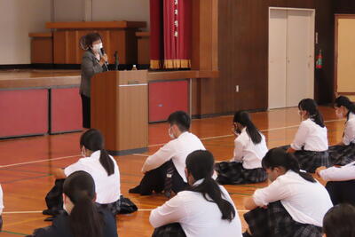 講演後には、生徒を代表して保健委員長がお礼の言葉を述べました。